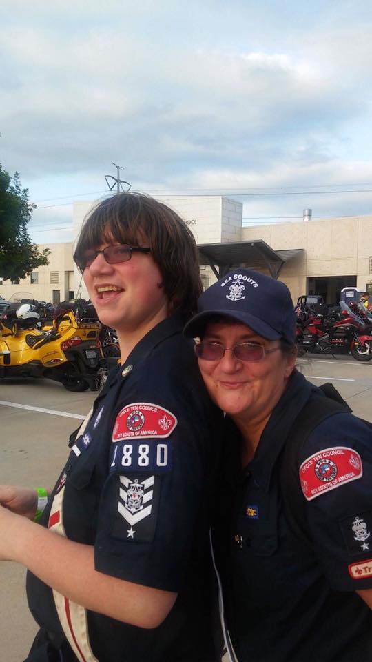 On May 20, 2017 the southern route of the 29th annual Run for the Wall made their pit stop in Grand Prairie, Texas. Members of Ship 1880, the SSS Zavala, were on hand in the parking lot of the Dubiski Career High School to welcome approximately 400 motorcycles and riders for the night. Our Boatswain, Coltrane Lins, not only helped to sweep the parking lot to make sure no debris would tear up the tires, but he helped to install the American Flags and the MIA/POW Flags to greet the riders. Many of the riders are veterans. Our Skipper, Peggy Kilcrease, and her First Mate, Kandice Lins are always on hand to hug necks and welcome the riders to the cafeteria where a hot meal, cold drinks and also free massages await them before they bed down for the night. This is an event that is looked forward to each year by the entire city of Grand Prairie, Texas and the riders are greeted by many of Grand Prairie’s citizens who each year pile into the parking lot of the high school and stand along the highway route of the run.