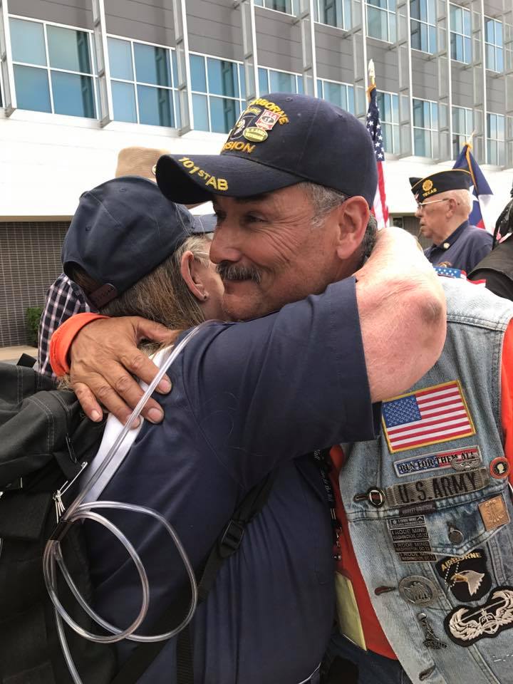 year before because we make it a point to hug the riders instead of just shaking their hand. 2016 was different, one rider remembered our Skipper Peggy Kilcrease for another reason. While she was a Army Nurse stationed in Cu Chi from 1968 until 1970, this soldier had been in her care for malaria. He remembered her putting ice on him and turning on a huge fan. He grabbed her and cried that it was because of her that he was still alive and able to ride from San Francisco to Washington, DC. Each year we hug and we cry. We cry for the ones that aren’t able to ride, and we cry with thanksgiving that the riders that are in Grand Prairie are fine.
